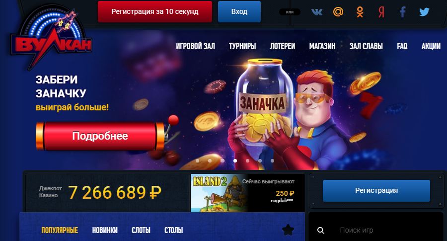 Казино Вулкан – популярный сайт с множеством игровых автоматов для игры на деньги, с регулярными турнирами и другими увлекательными играми, с выгодными бонусами, среди которых есть даже бездепозитный на 3000 рублей – его дают сразу при регистрации.